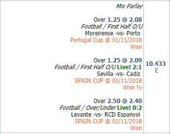 - Moreirense vs Porto, odds = 2.08 (menang full)